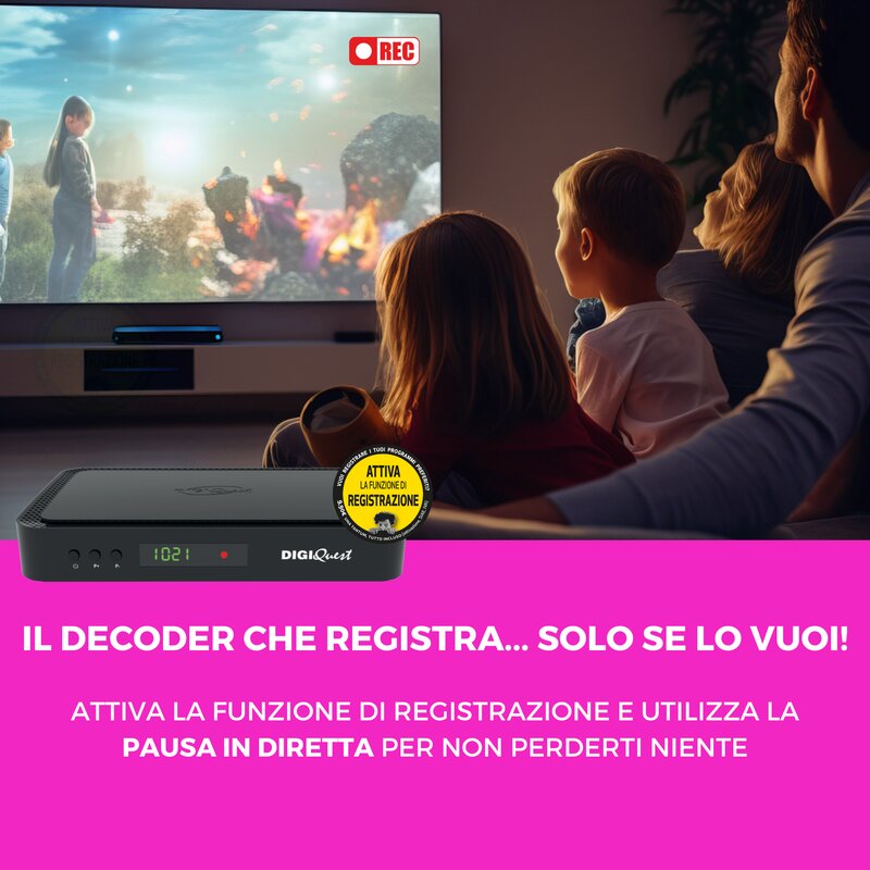 Der COMBO 4K-Decoder ist die neueste Generation von Decodern. Er ermöglicht die Anzeige der auf tivùsat in HD und 4K Ultra HD vorhandenen freien Kanäle, aller Free To Air-Satellitenkanäle und der digitalen terrestrischen Kanäle. Ideale Lösung für alle, die die HD- und UltraHD / 4K-Qualität genießen möchten, die auf tivùsat sichtbar ist, oder auf Digital Terrestrial zugreifen möchten. Der Q99 verfügt außerdem über viele Funktionen, die ihn auf dem Markt einzigartig machen: Videorecorder, Mediaplayer und interaktives On-Demand-Fernsehen mit HbbTV, einschließlich RAI PLAY und MEDIASET PLAY (Internetverbindung erforderlich).